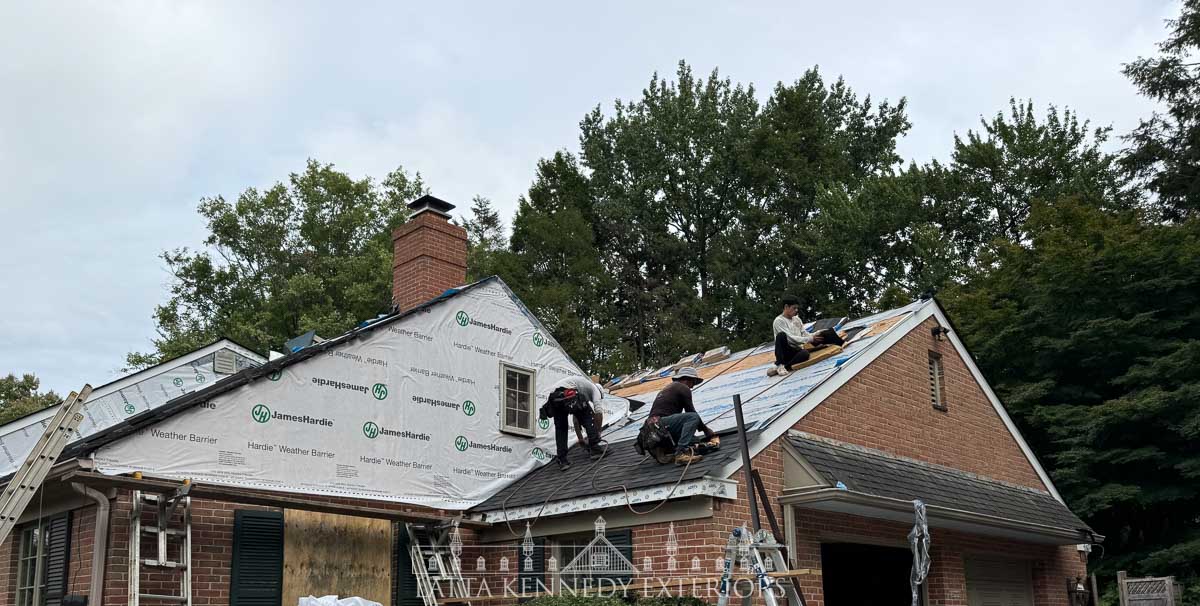 Located in Bryn Mawr, Pennsylvania, this sprawling home was in desperate need of an exterior refresh. The new roofing, siding, and trim we installed completely transformed the home. A complete CertainTeed Integrity roof system was installed featuring CertainTeed Landmark Pro Series shingles in Espresso. Upon completion of the roof, James Hardie 8-1/4” Cedar Mill Lap Siding in a complementary color of Timberbark was installed. New AZEK trim boards were installed on all soffit, rake, and fascia sections of the home followed by new 6” K style gutters in Dark Bronze. Our client was thrilled with the transformation!