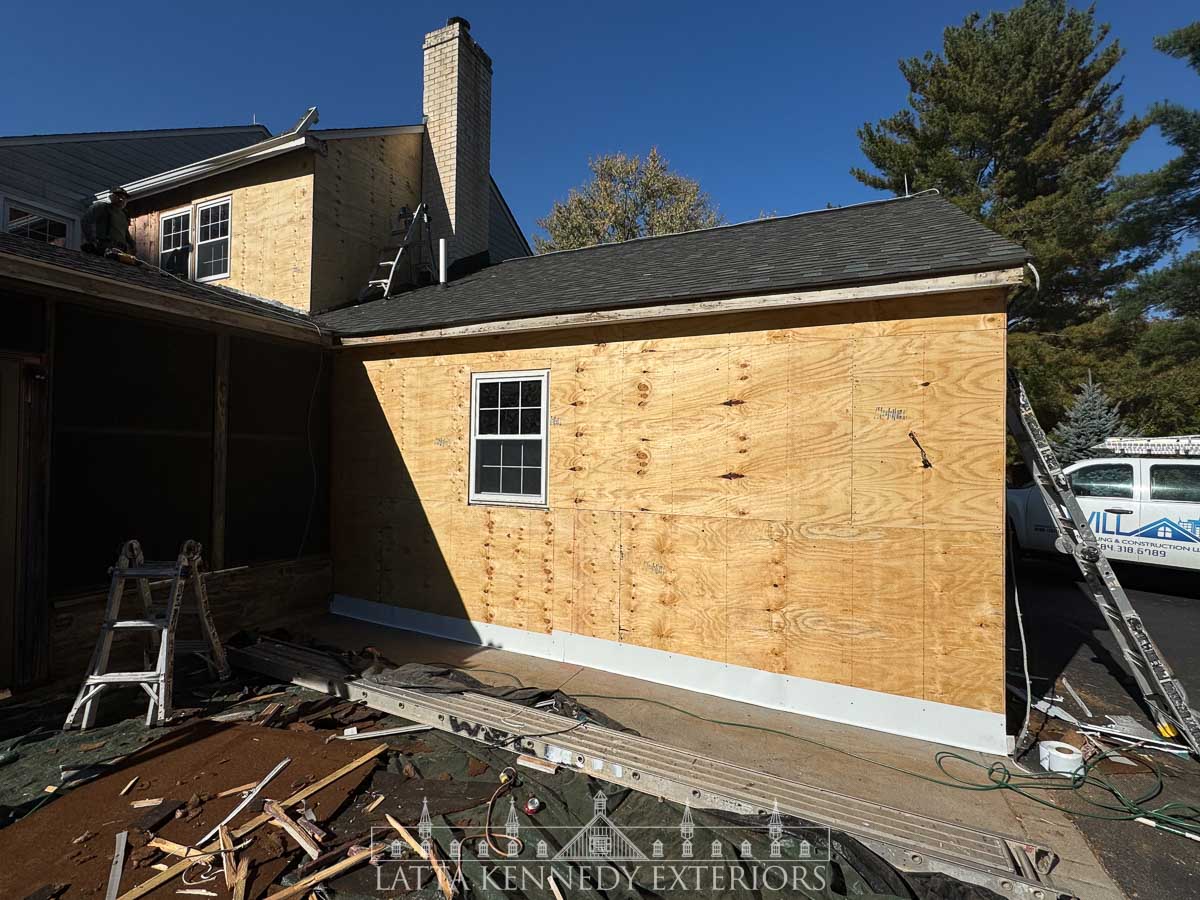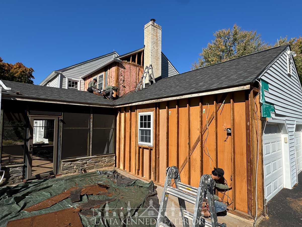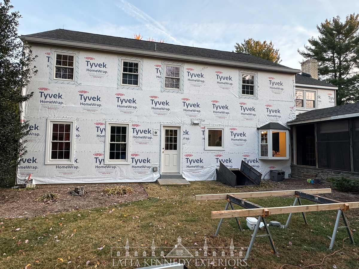 For this home in West Chester, PA, our team completed a thoughtfully planned exterior remodel designed to enhance curb appeal, improve durability, and restore structural integrity. During the initial inspection, we identified areas of framing deterioration. With careful planning and precise execution, we installed new framing to strengthen the home’s structure and provide a solid foundation for the upgraded exterior materials.