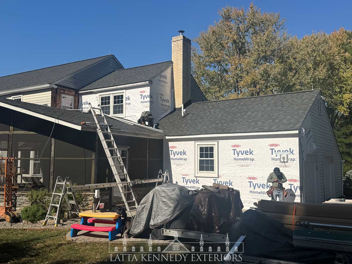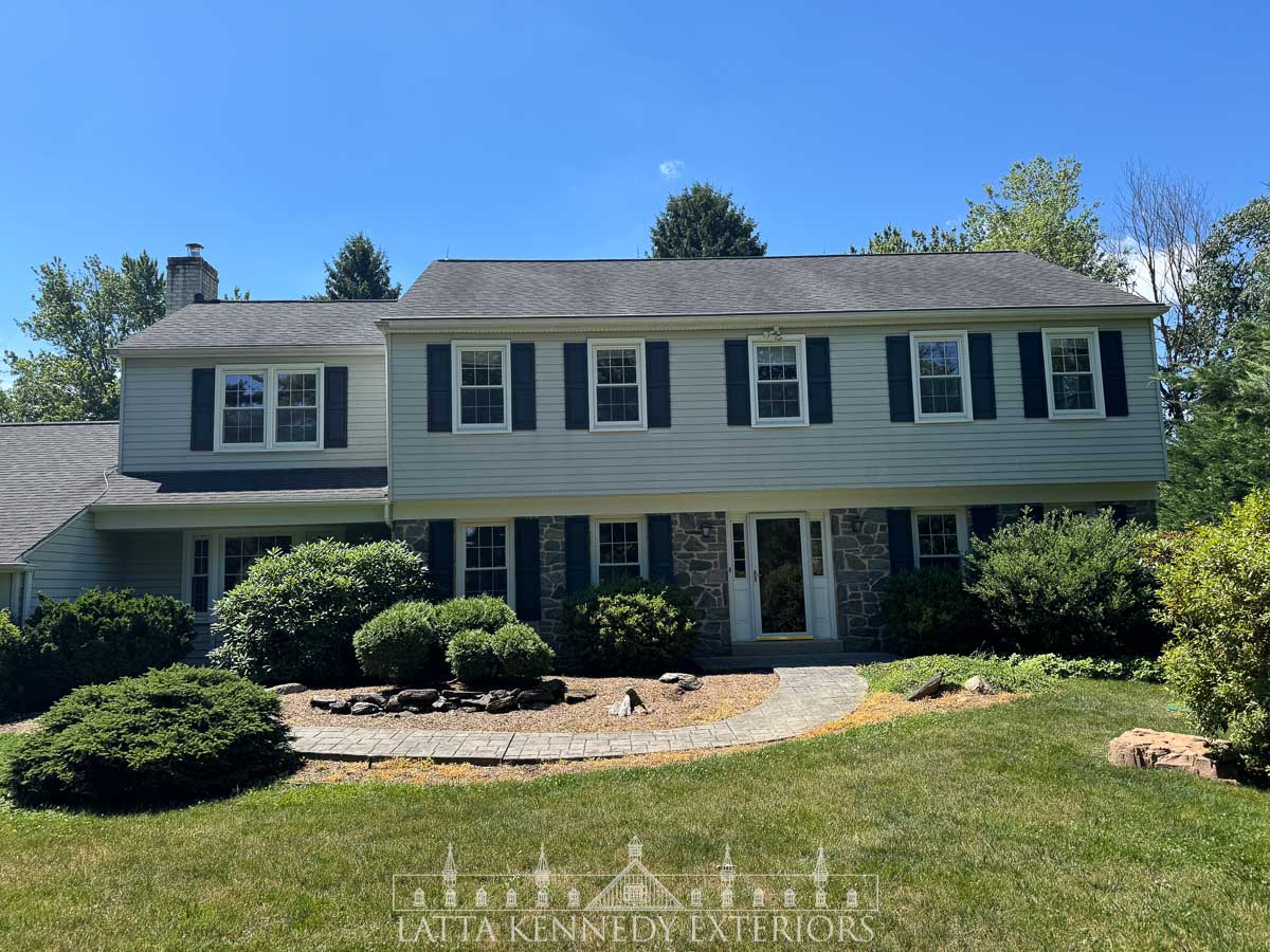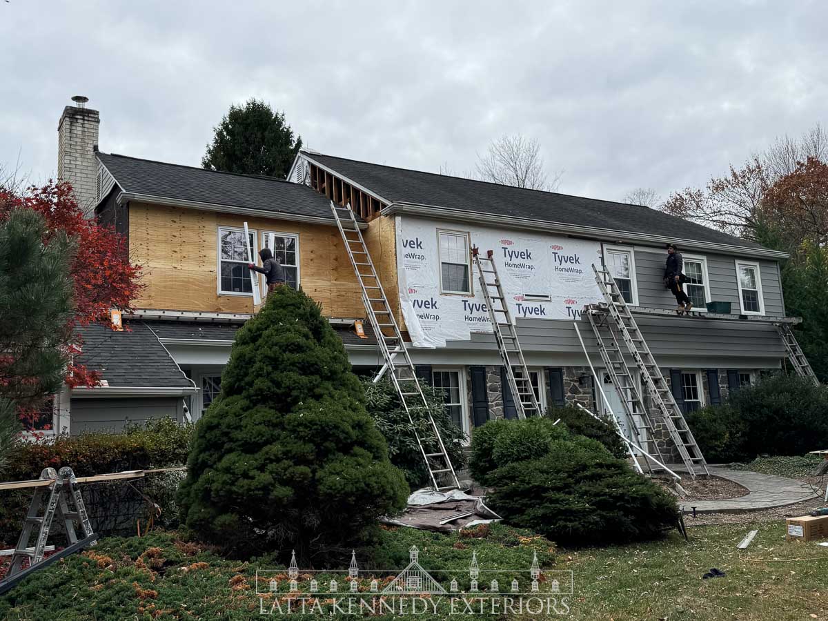 For this home in West Chester, PA, our team completed a thoughtfully planned exterior remodel designed to enhance curb appeal, improve durability, and restore structural integrity. During the initial inspection, we identified areas of framing deterioration. With careful planning and precise execution, we installed new framing to strengthen the home’s structure and provide a solid foundation for the upgraded exterior materials.